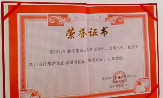 776net必赢官网志愿者参加 2017曲江旅游志愿者颁奖典礼