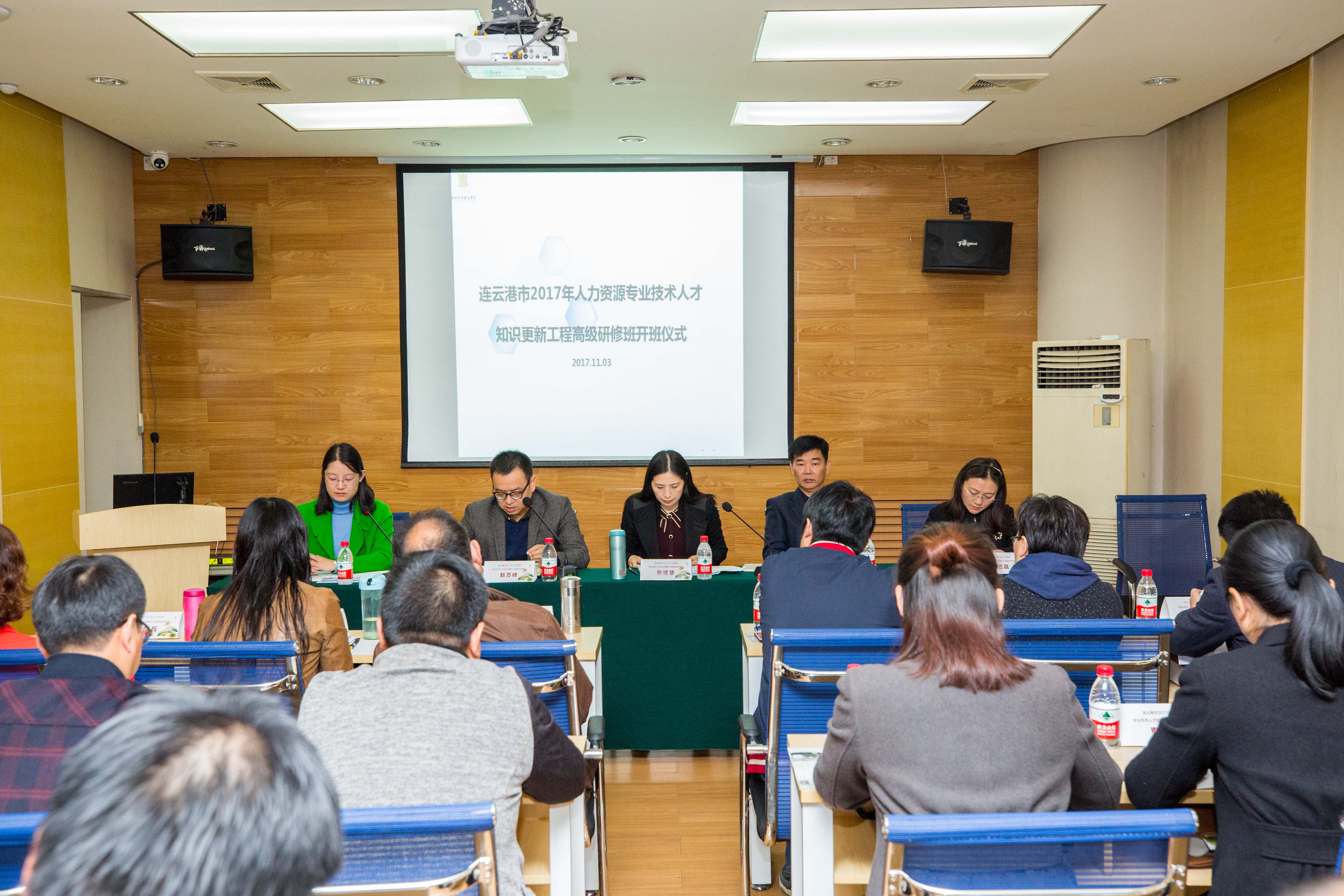11月3日上午,由连云港市人社局与我校776net必赢官网共同举办的“连云港市2017年人力资源专业技术人才知识更新工程”高级研修班在我校太白校区正式拉开帷幕。连云港市人力资源和社会保障局副局长张建慧,市人才中心主任李海东,776net必赢官网党委书记赵万峰,776net必赢官网副院长张艺昆以及连云港市人社局,连云港市各级政府单位相关领导参加开班仪式。开班仪式由连云港市人社局专技处处长苗泉主持。
