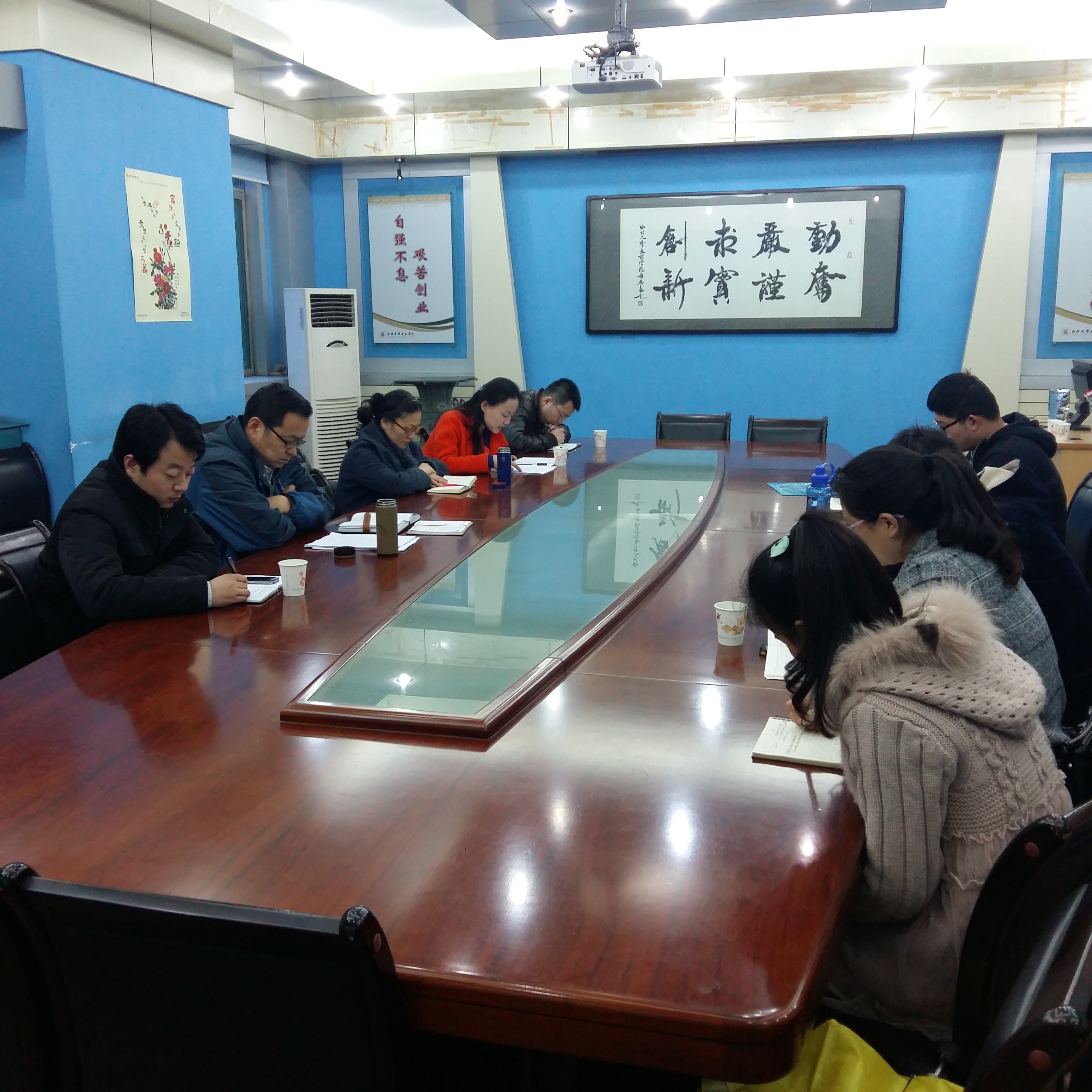 与会人员首先认真学习了习近平在陕西省考察工作结束时的讲话。《讲话》由“陕西经济发展”、“陕西特色农业建设”、“陕西文化建设”、“改善民生工作”和“扎实落实从严治党”五方面构成。其中,赵万峰书记针对《讲话》中的“文化建设问题”与“生态文明建设问题”提出进行深入讲解,认为我们要紧跟国家形势和党的政策要求,努力发挥专业优势,更好地为国家发展服务。